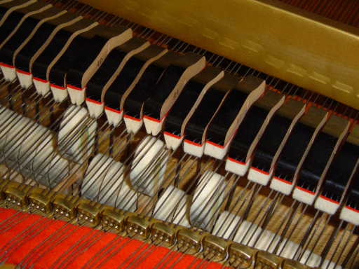 鋼琴的制音器(damper)。被彈奏的琴鍵,制音器會離開琴弦,讓琴弦呈現開放狀態