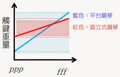 橫軸代表琴音的強弱,縱軸代表手指會感覺到的重量